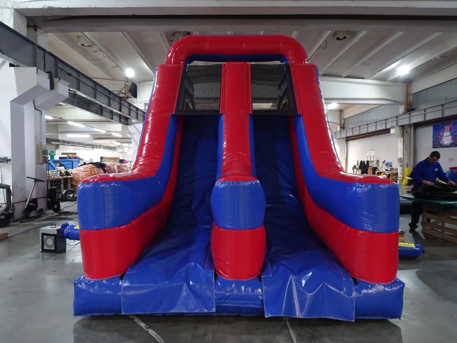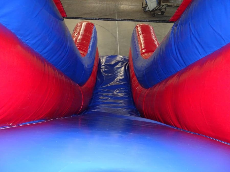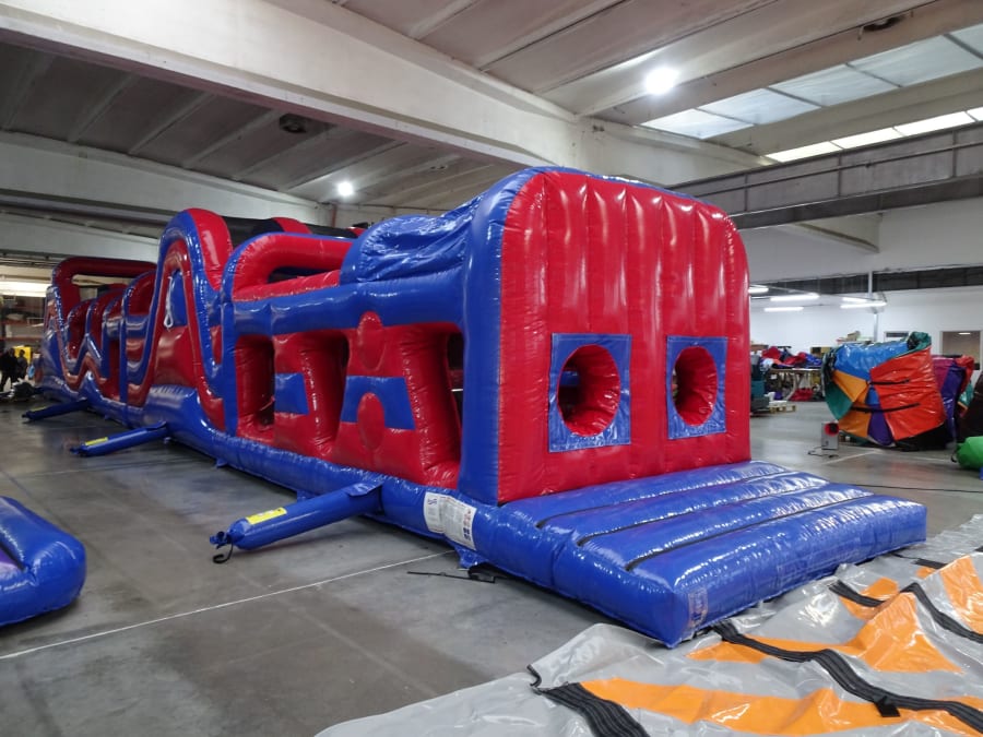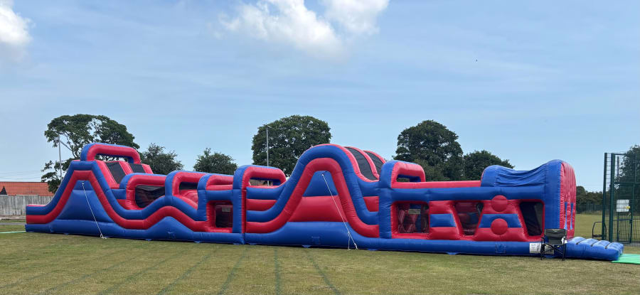 Ultimate Challenge: The double slide version maximises space to incorporate more biff bashes and obstacles, providing an energy-sapping challenge that will test even the most determined contenders.