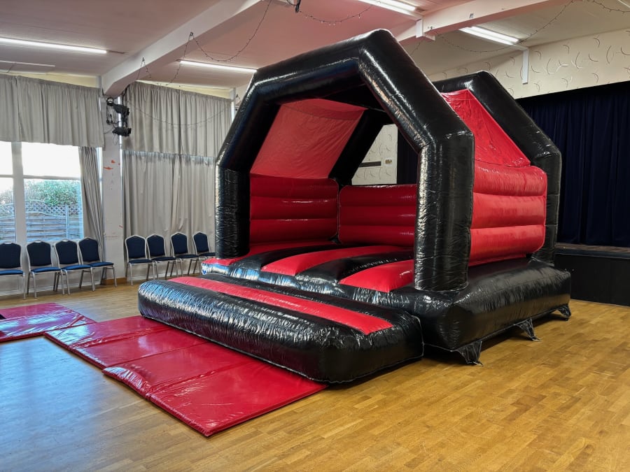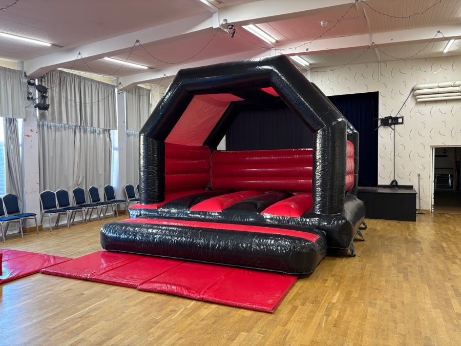 Bouncy castle 15ft x15ft suitable for adults This Bouncy castle is suitable for both Children and Adults. Black and Red in colour ,looks fantastic in any garden, at University or College socials, on Corporate team building events, weddings, fun days, Events or anything you can think of. The castle has a built-in shower cover for them inclement days or very sunny days to keep the castle cool. We hire this castle throughout the north east including - Co Durham, Chester le street, Consett, Stanley, Hexham, Stanhope, Crook, Sacriston, Gateshead, Whickham, Rowlands Gill, Prudhoe, Burnopfield and everywhere in-between.